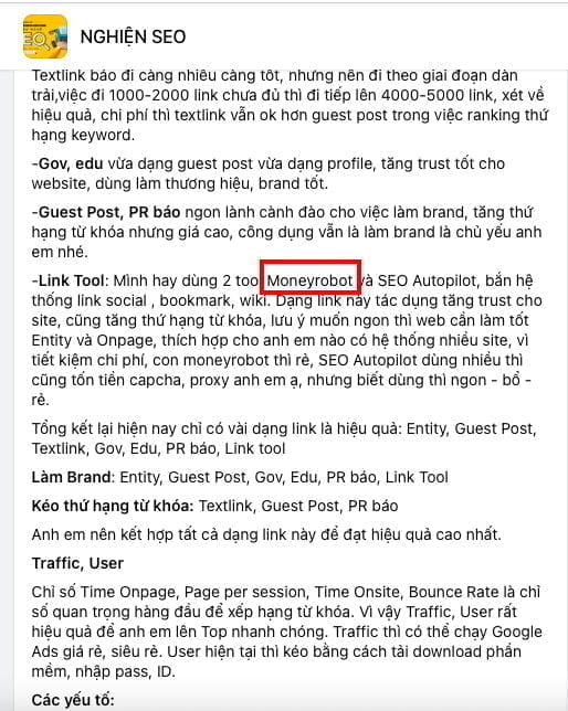 Money Robot cũng chính là phần mềm được nhiều anh em SEO trong nhóm Nghiện SEO sử dụng trong số các công cụ tạo backlink. Đây có phải là phần mềm backlink mà bạn đang tìm kiếm?