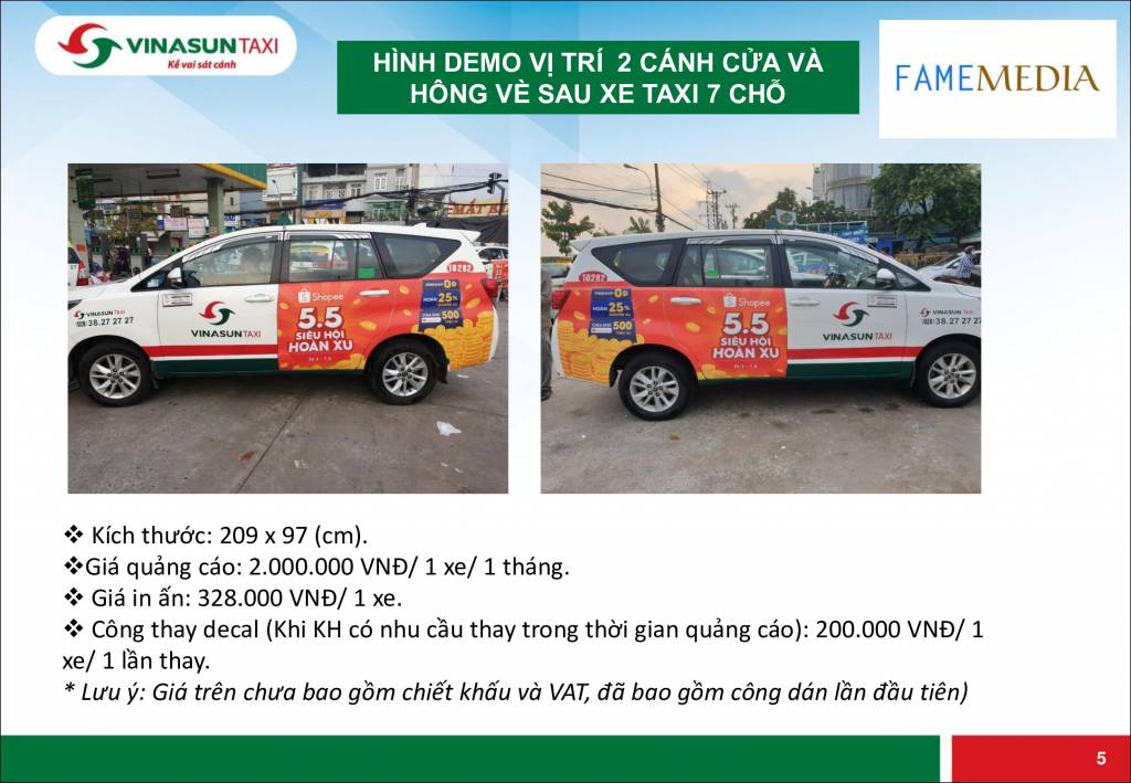 Quảng cáo Taxi Vinasun số lượng sao cho hiệu quả?