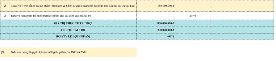 Các gói tài trợ Tài Trợ Sản Xuất Phim Chiếu Rạp: