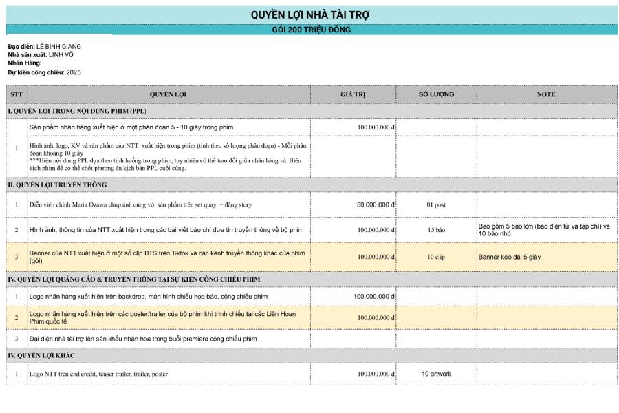 - Thảo luận và xác định quyền lợi tài trợ: Đảm bảo rằng doanh nghiệp và nhà sản xuất phim thống nhất về quyền lợi và nghĩa vụ đôi bên.