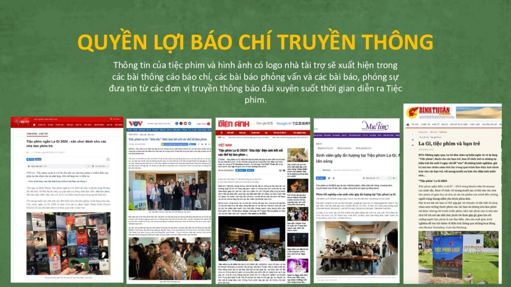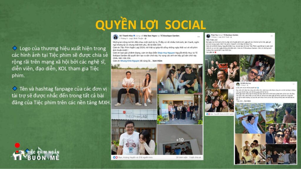 - Nhắc tên thương hiệu trong các bài viết PR về sự kiện trên báo điện tử, fanpage sự kiện và đối tác truyền thông.