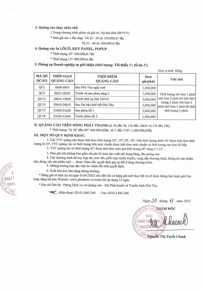 Quảng cáo truyền hình Phú Thọ với bảng giá chi tiết thời lượng, khung giờ, chương trình phát sóng là thông tin hữu ích khi quý doanh nghiệp cần book quảng cáo trên đài truyền hình Phú Thọ.