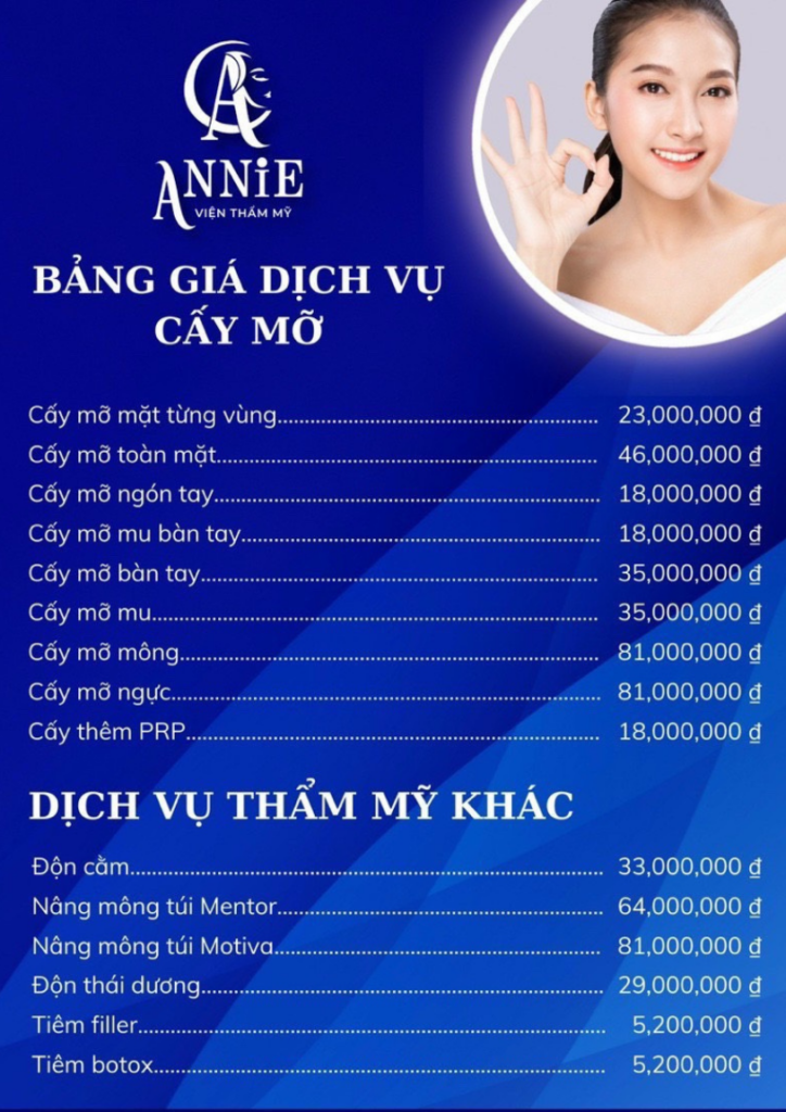 BẢNG GIÁ DỊCH VỤ CẤY MỠ